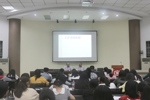讲座中,刘福春结合自身三十余载学术研究经历,从书目、研究资料专集及年鉴年表三大方面出发,依据出版时间顺序,向在场师生依次介绍了包括《全国总书目》《中国近代现代丛书目录》《中国现代文学史资料汇编》《中国文学研究年鉴》在内的三十余部工具书目。其书目涵盖了作家生平、创作自述、研究文章选辑、著译系年及研究资料目录索引等内容,是研究作家及其作品的重要资料。他表示,史料期刊研究是文学研究的根本,工具书对论文写作及阶段性文学研究等方面都具有重要的参考价值,希望学院学生能够充分利用图书馆资源,拓宽阅读范围,充分发挥工具书在学术研究中的作用。