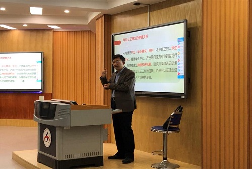晚上的讲座中,林正军以“英语专业师范认证与专业内涵建设”为话题展开论述,主要涉及到师范类外语专业认证的理念和内容,并提出了开展师范专业认证工作的建议。