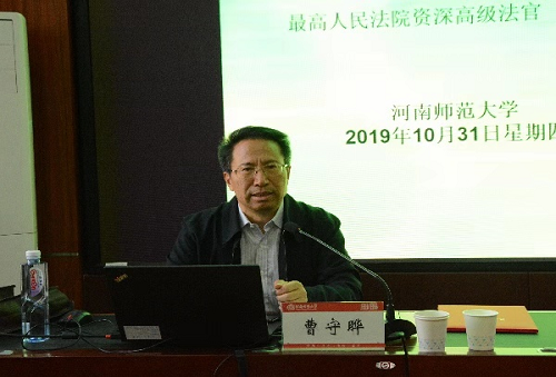 10月31日下午,应法学院邀请,最高人民法院资深高级法官曹守晔在崇法楼301会议室作了题为“中国民法70年回顾与展望”的学术讲座。法学院部分教师和本科生参加了本次讲座。讲座由法学院院长王鹏祥主持。