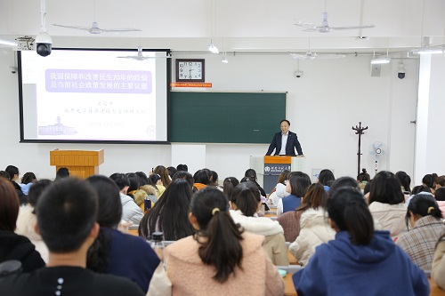 11月28日,应社会事业学院邀请,南开大学社会建设与管理研究院院长关信平教授在东区综合楼104室作了主题为“我国保障和改善民生70年的经验及当前社会政策发展的主要议题”的学术讲座,学院相关专业教师、学生200余人共同聆听本次讲座。讲座由学院党委书记魏雷东主持。