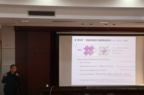 12月7日下午,应我校物理学院邀请,郑州大学李新建教授来我校作了题为“铯铅卤化物钙钛矿纳米晶的掺杂效应”的报告。报告会在物理南楼报告厅举行。各专业师生共计百余人参加了此次报告会。