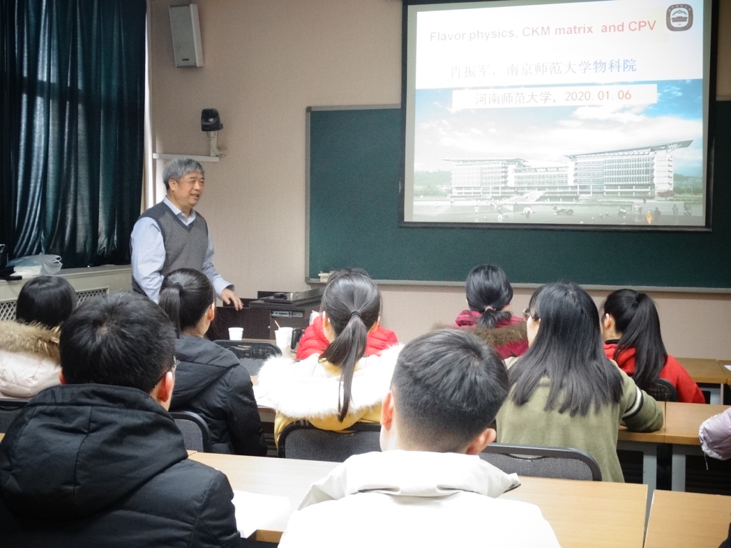 1月6日下午,应我校物理学院邀请,南京师范大学博士生导师肖振军教授来我校访问并作了题为“flavor physics, CKM matrix and CP violation”的学术报告。报告会在物理南楼 511教室举行,物理学院青年教师,研究生、本科生共40余人参加了报告会。