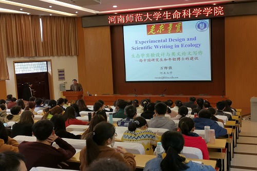 10月29日下午,应生命科学学院邀请,我校85级校友、河北大学博士生导师万师强教授在生物报告厅作了题为“生态学实验设计与英文写作——给中国研究生和年轻博士的建议”的学术报告。学院相关专业师生180余人参加了此次报告会。报告会由学院院长余国营主持。