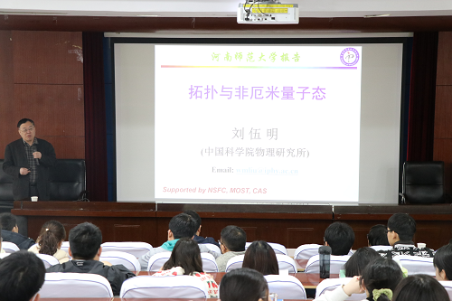 4月2日上午,应我校物理学院邀请,中国科学院物理所研究员刘伍明来我校讲学。报告会在物理南楼二楼学术报告厅举行。学院部分师生参加本次活动。