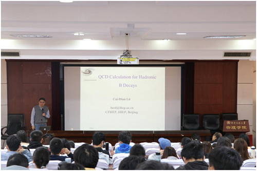 4月22日上午,国家基金委“杰出青年基金”、国际理论物理中心(ICTP)资深协联成员、国家基金委创新研究群体学术带头人、中科院高能物理研究所研究员吕才典应我校物理学院邀请,在物理南楼二楼报告厅作题为“QCD Calculation for Hadronic B Decays”学术讲座。学院相关专业的教师、研究生以及本科生百余人参加了报告会。