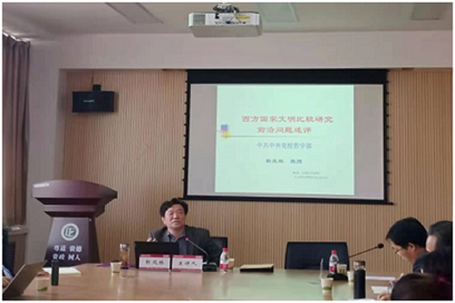 4月26日上午,应政治与公共管理学院的邀请,中共中央党校伦理学教研室主任靳凤林教授为政治与公共管理学院师生作了题为《西方国家文明比较研究前沿问题述评》的学术报告。学院领导班子成员、相关专业教师、研究生、本科生参与。报告会由学院院长李洪河教授主持。