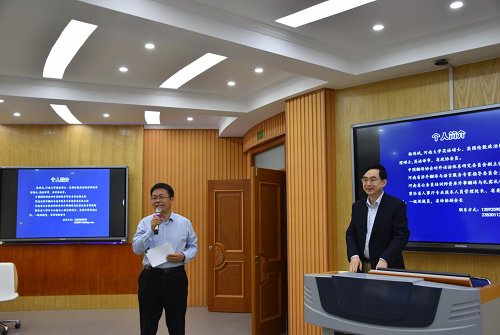 5月7日下午,中国翻译协会对外话语体系研究委员会副主任、河南省涉外翻译与语言服务专家指导委员会主任、中共河南省委外事办原副主任、一级巡视员杨玮斌译审应邀在外国语学院智慧教室作了题为“翻译河南与地方对外话语构建”的讲座。学院专业教师和研究生共100余人参加此次讲座。讲座由学院院长刘国兵主持。