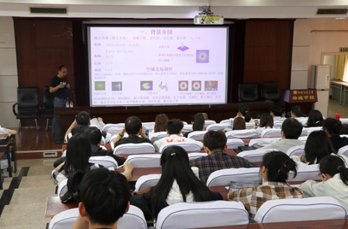 蔡阳健教授以“部分相干光束调控及应用”为题,向师生介绍了部分相干光束在大气激光通信、光学成像、微粒操控等领域具有独特的优势。他简述了部分相干光束在相干调控、偏振调控和位相调控的理论研究和实现方法,并阐明了其重要的应用价值。最后,蔡阳健教授介绍了部分相干光束在激光核聚变、非干涉相位成像、原子光学等各个方向的应用。