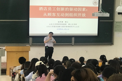 5月20日上午,应旅游学院邀请,山东大学徐凤增教授在东教2-303教室作了题为“酒店员工创新的驱动因素:从顾客互动到组织开放”的学术讲座。讲座由旅游学院副院长付强主持。学院酒店管理系专业教师、酒店管理专业本科生约300余人聆听了本次讲座。