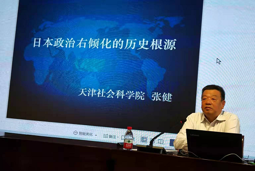 5月28日上午,应我校外国语学院邀请,中国日本史学会名誉会长、南开大学兼职博士生导师、天津社会科学院前院长、研究员张健在教育学部报告厅作了题为《日本政治右倾化的历史根源》的学术报告。学院部分教师、研究生聆听了报告。报告由学院副院长娄宝翠老师主持。