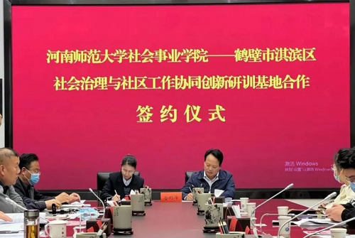 3月9日上午,社会事业学院与鹤壁市淇滨区城市社会治理和社区服务局在淇滨区会务中心联合举行社会治理与社区工作协同创新研训基地合作签约仪式。鹤壁市淇滨区区委常委、区委组织部部长王朝栋,鹤壁市淇滨区城市社会治理和社区服务局局长元军平,学院负责人及导师代表,淇滨区社区服务中心及街道办事处代表等人参加会议。会议由淇滨区副区长于顺清主持。