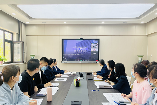 4月19日,外国语学院与日本顺天堂大学国际教养学部举办“线上”交换生项目说明会。顺天堂大学国际交流中心主任李梨、国际教养学部教务科科长助理杉山幸弘等在“线上”参加会议。我校会场设在外语楼会议室,外国语学院相关负责人,教师代表及拟赴日交换生参会。