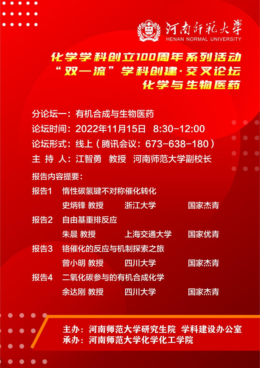 河南师范大学化学学科“双一流”创建交叉融合创新论坛暨化学学科创立100周年系列学术交流活动
