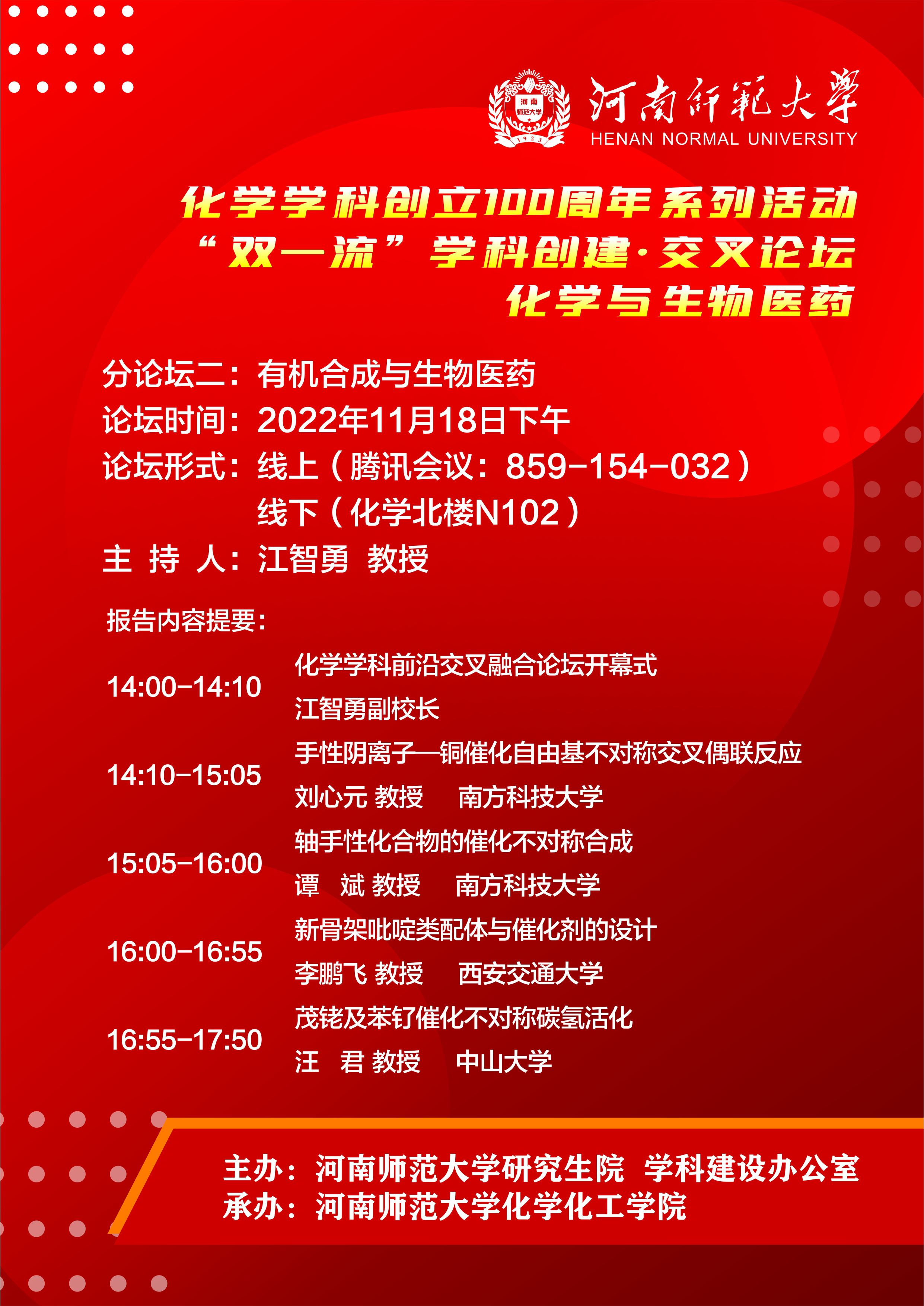 河南师范大学化学学科“双一流”创建交叉融合创新论坛暨化学学科创立100周年系列学术交流活动(二)