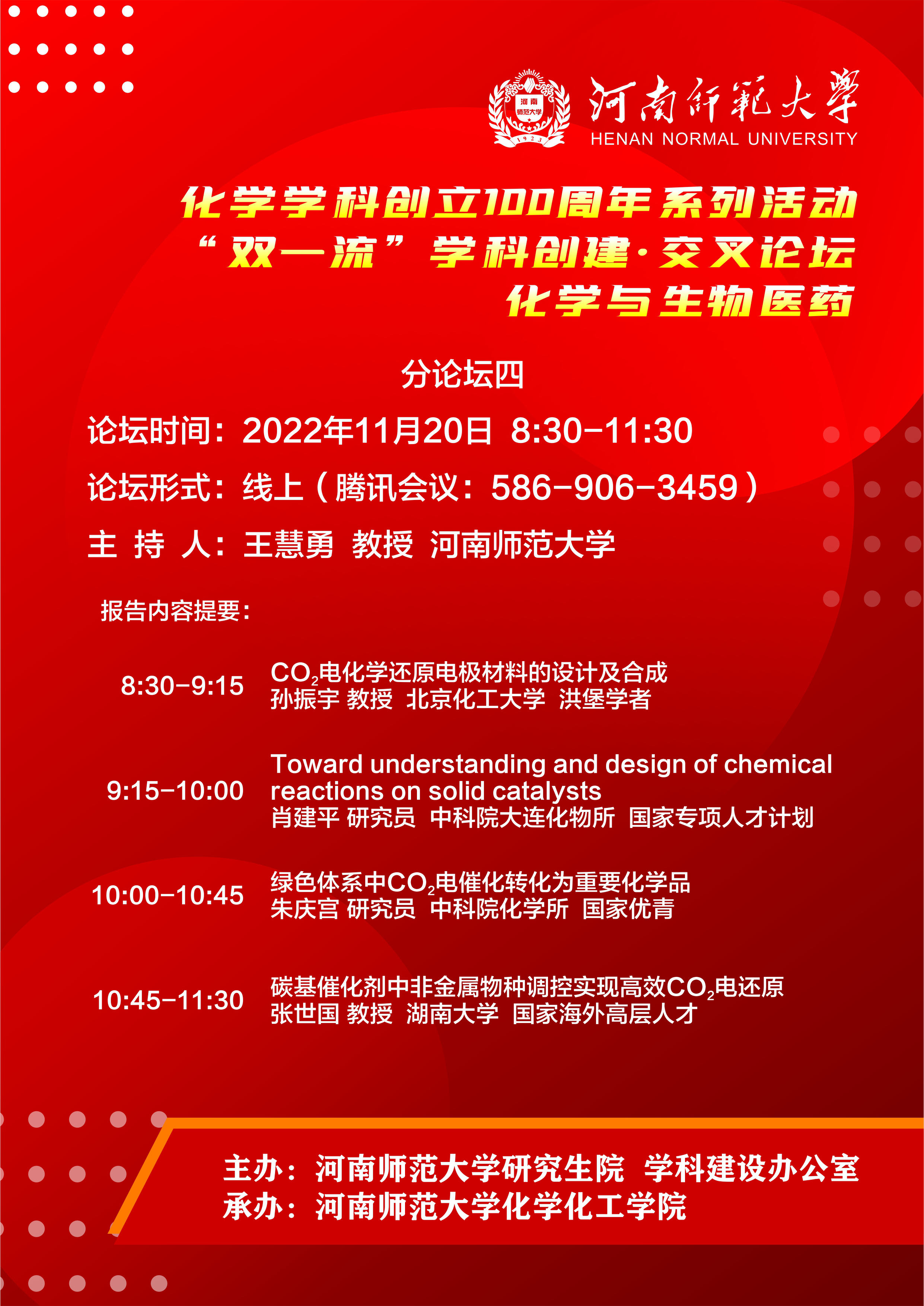 河南师范大学化学学科“双一流”创建交叉融合创新论坛暨化学学科创立100周年系列学术交流活动(四)