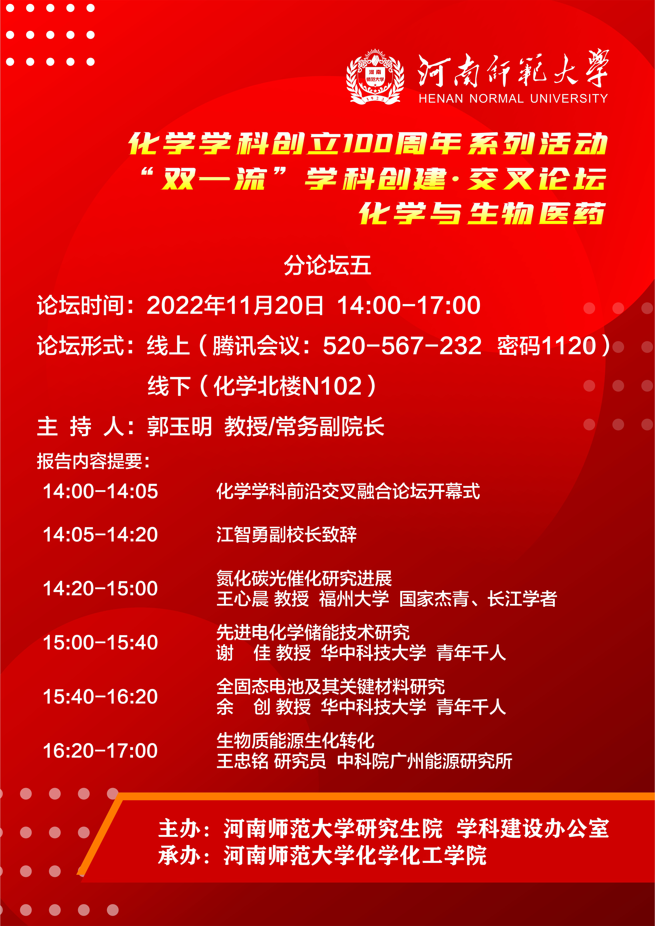 河南师范大学化学学科“双一流”创建交叉融合创新论坛暨化学学科创立100周年系列学术交流活动(五)