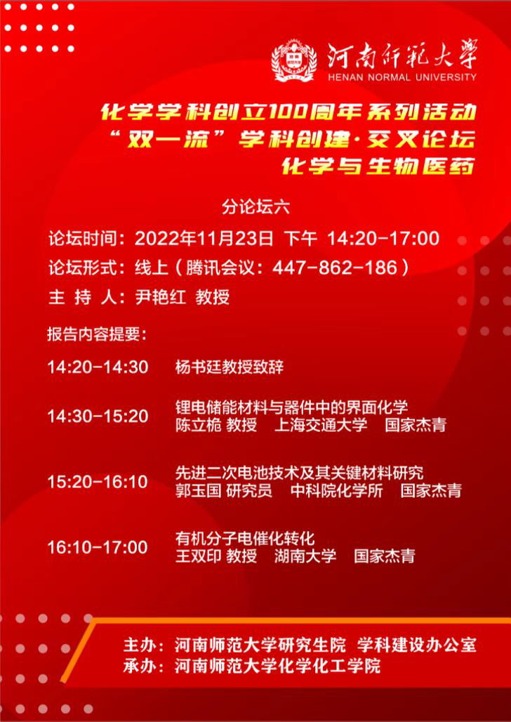 河南师范大学化学学科“双一流”创建交叉融合创新论坛暨化学学科创立100周年系列学术交流活动(六)
