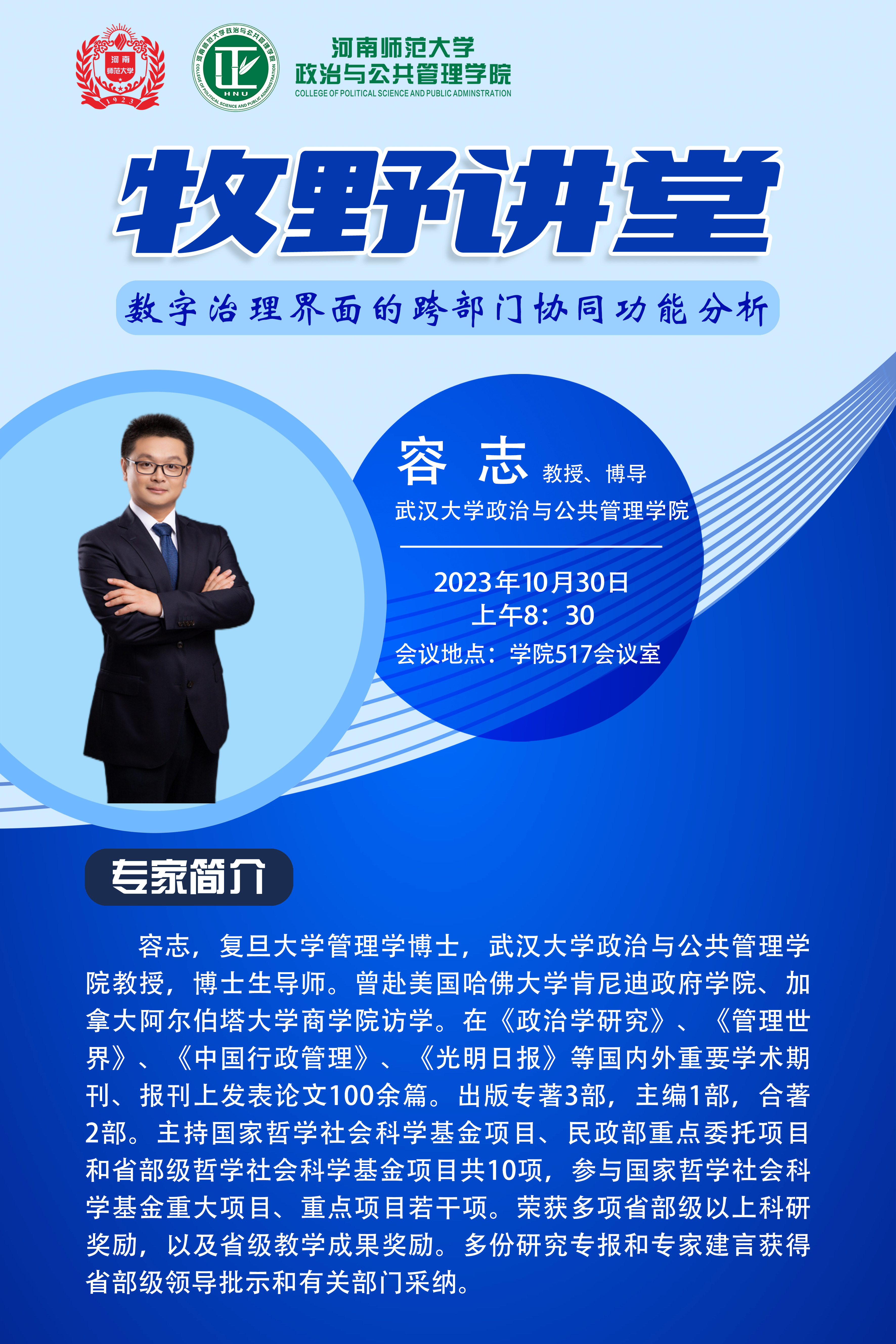 武汉大学容志教授将应邀做客百年校庆之牧野讲堂