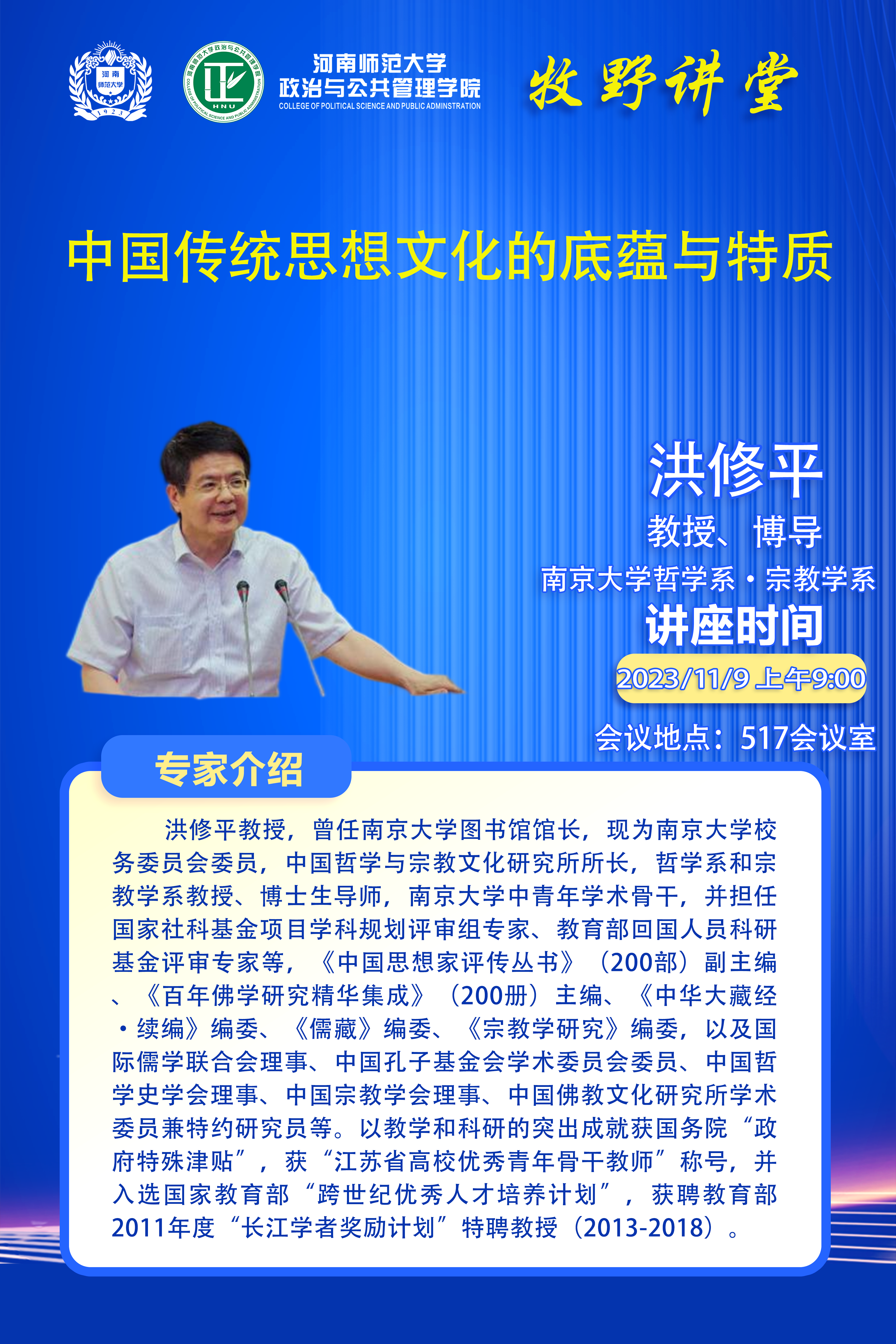 南京大学洪修平教授将应邀做客百年校庆之牧野讲堂