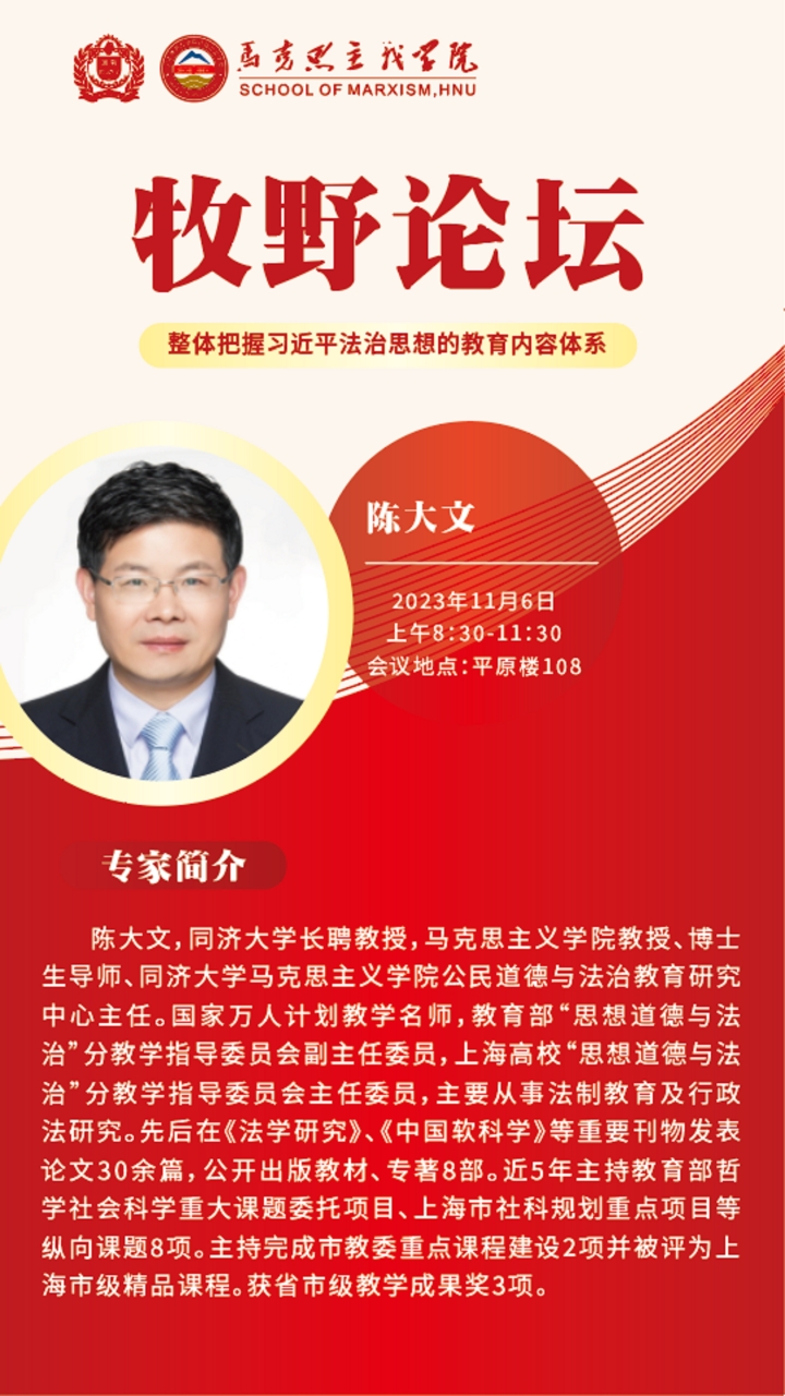 同济大学陈大文教授将应邀做客河南师范大学办学100周年之马克思主义牧野论坛