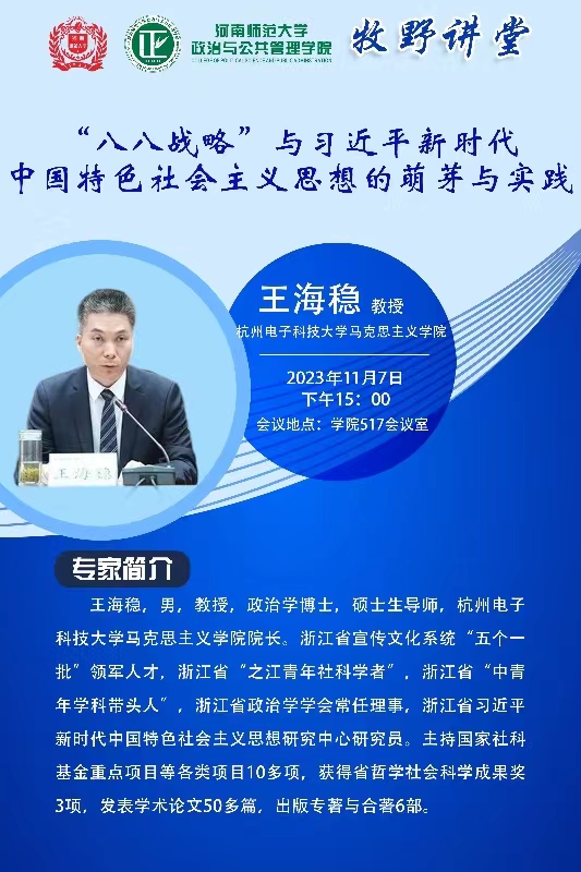 杭州电子科技大学王海稳教授将应邀做客河南师范大学办学100周年之牧野讲堂·博雅论坛