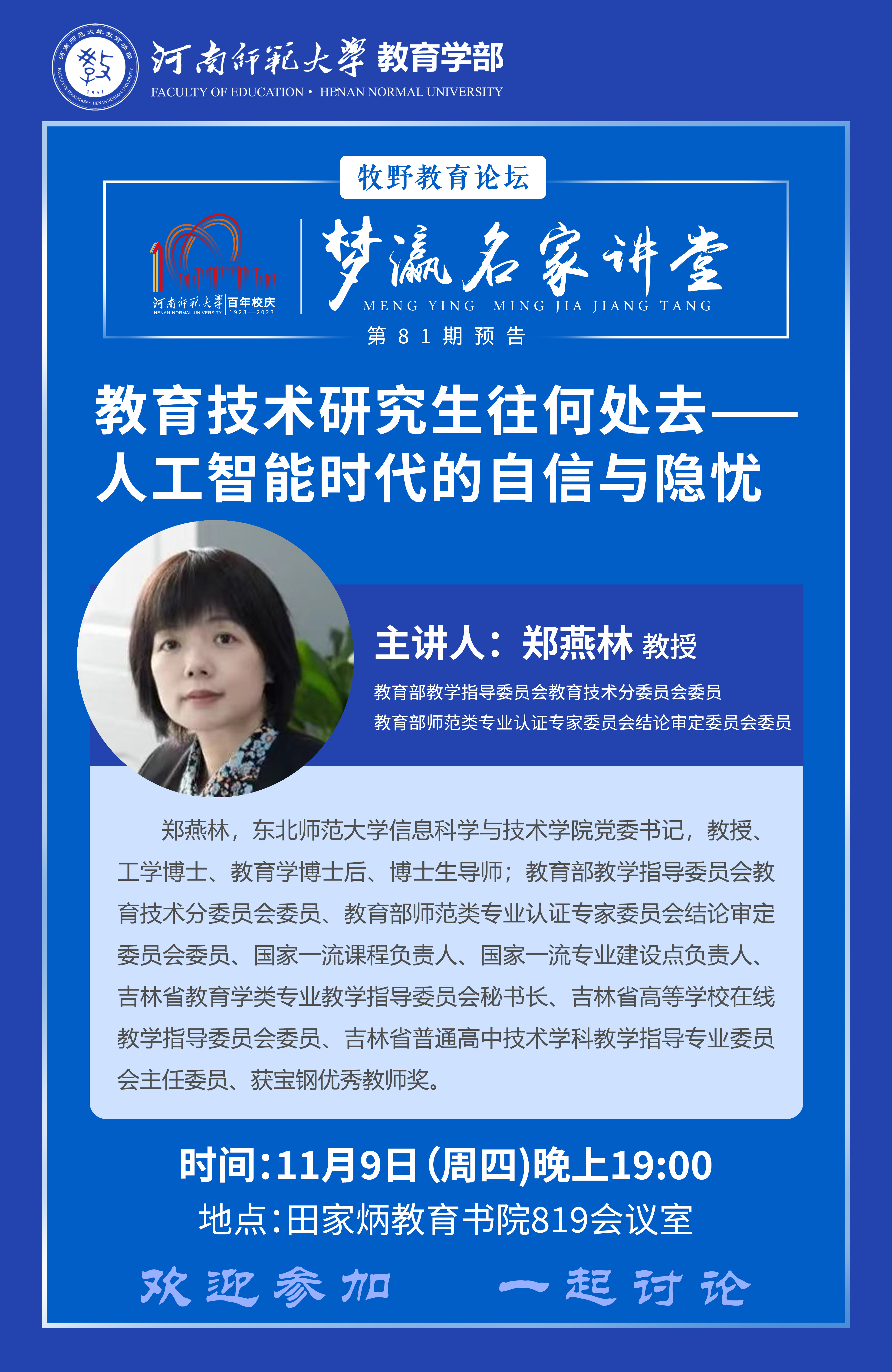 东北师范大学郑燕林教授将应邀做客百年校庆之梦瀛名家讲堂