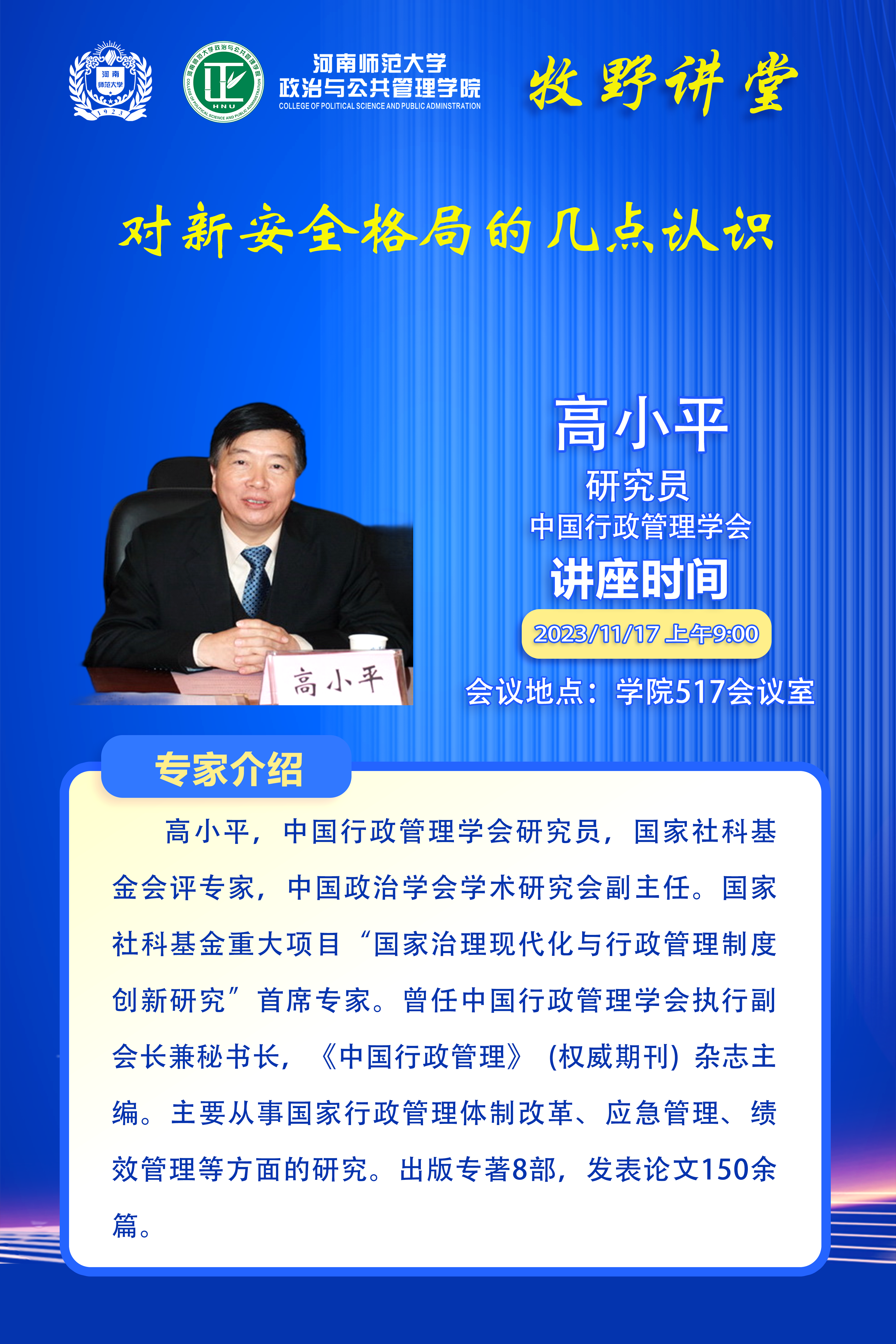 中国行政管理学会高小平教授将应邀做客百年校庆之牧野讲堂