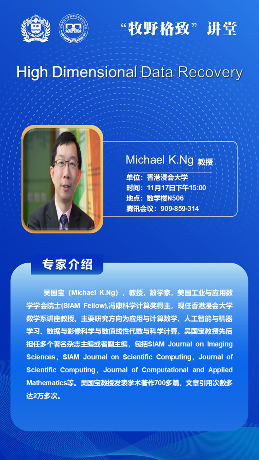 香港浸会大学Michael K.Ng教授将应邀做客百年校庆之“牧野格致”讲堂