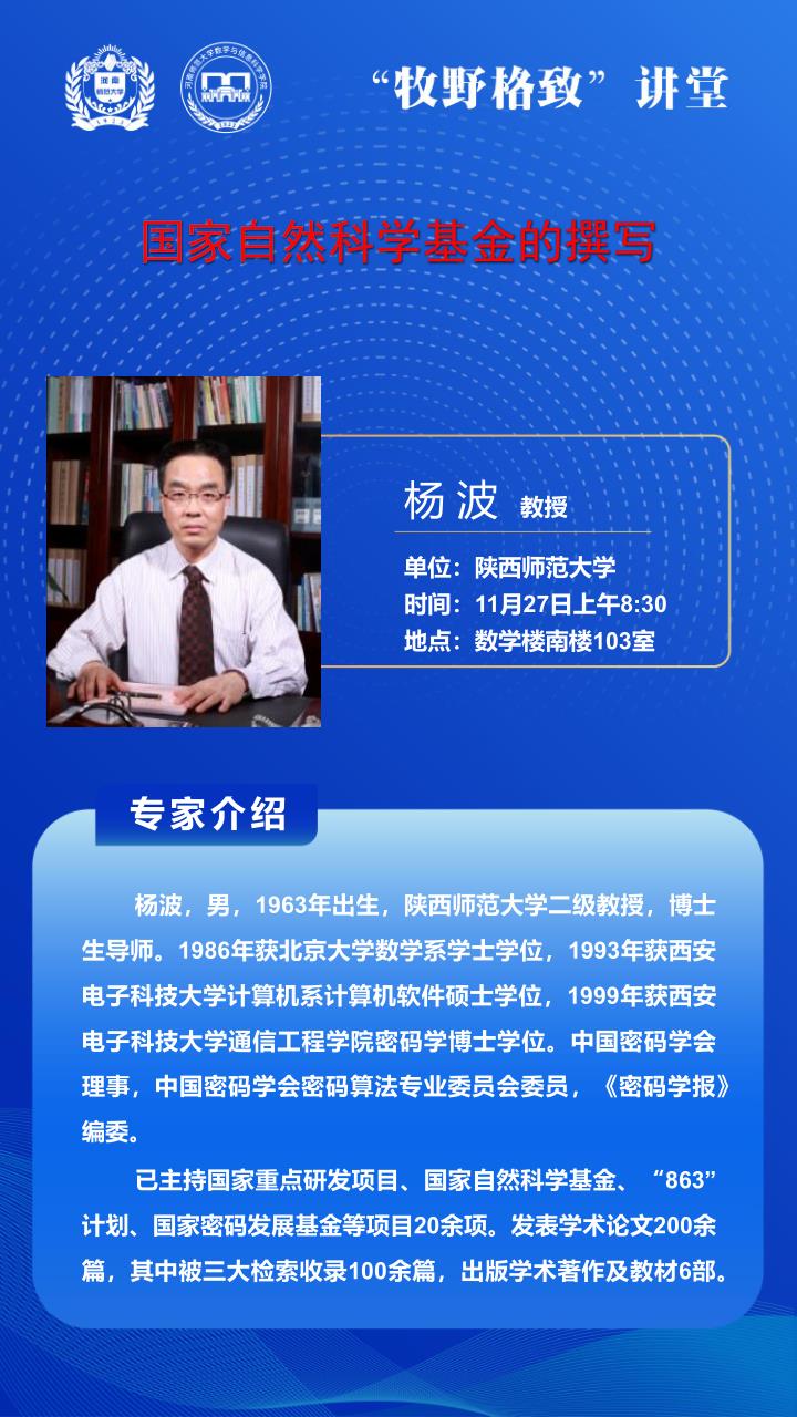 陕西师范大学杨波教授将应邀做客百年校庆之“牧野格致”讲堂