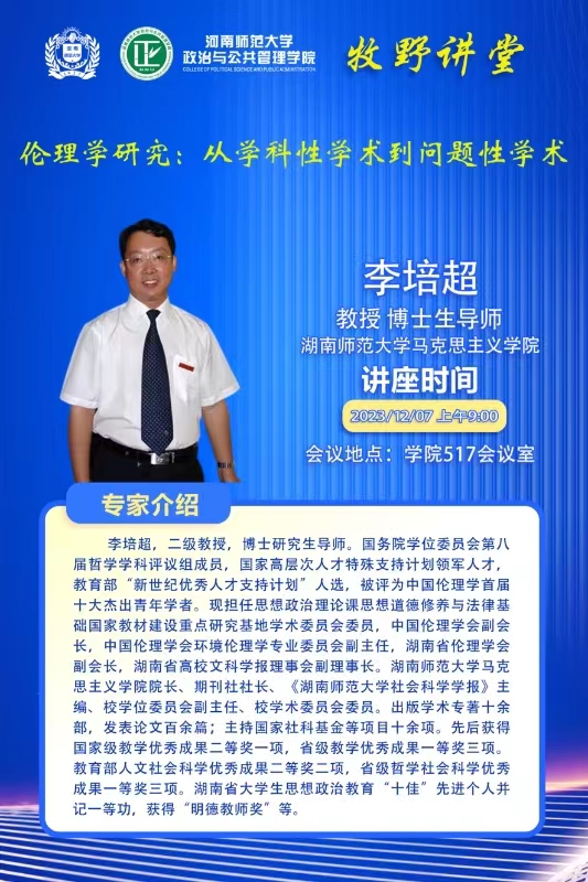 湖南师范大学李培超教授将应邀做客百年校庆之牧野讲堂