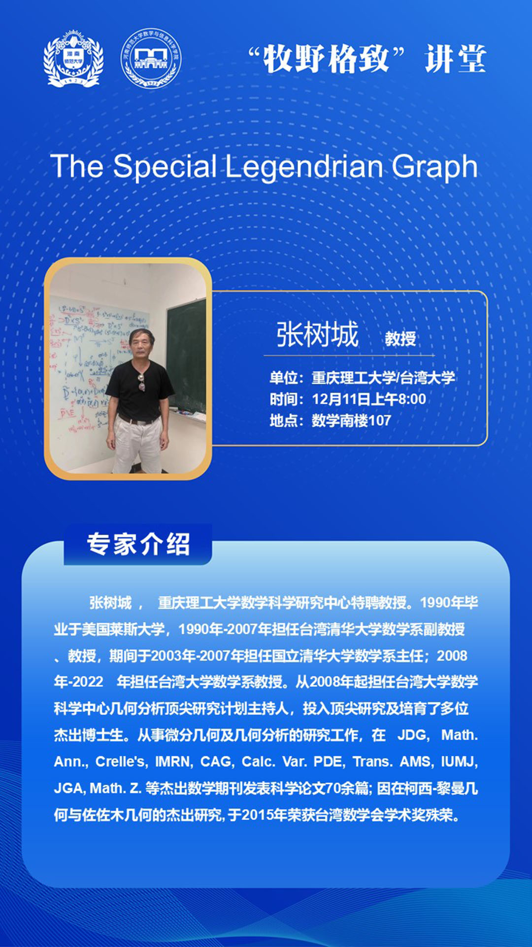 重庆理工大学张树城教授将应邀做客百年校庆之“牧野格致”讲堂