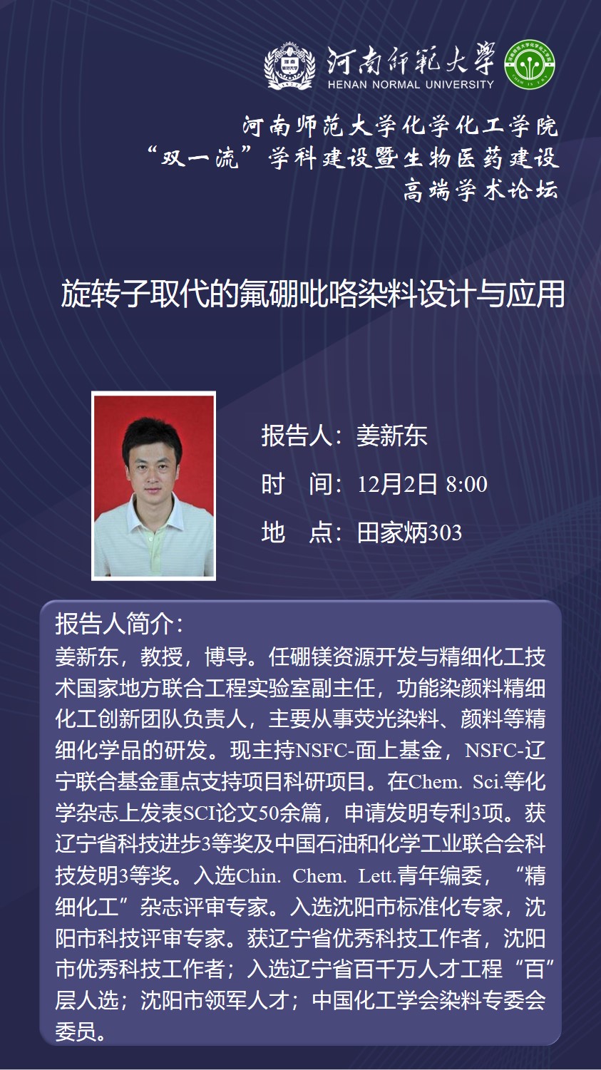 沈阳化工大学姜新东教授将应邀做客百年校庆之“俊甫”讲坛
