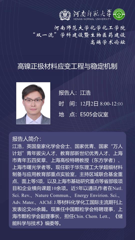 华东理工大学江浩教授将应邀做客百年校庆之“俊甫”讲坛