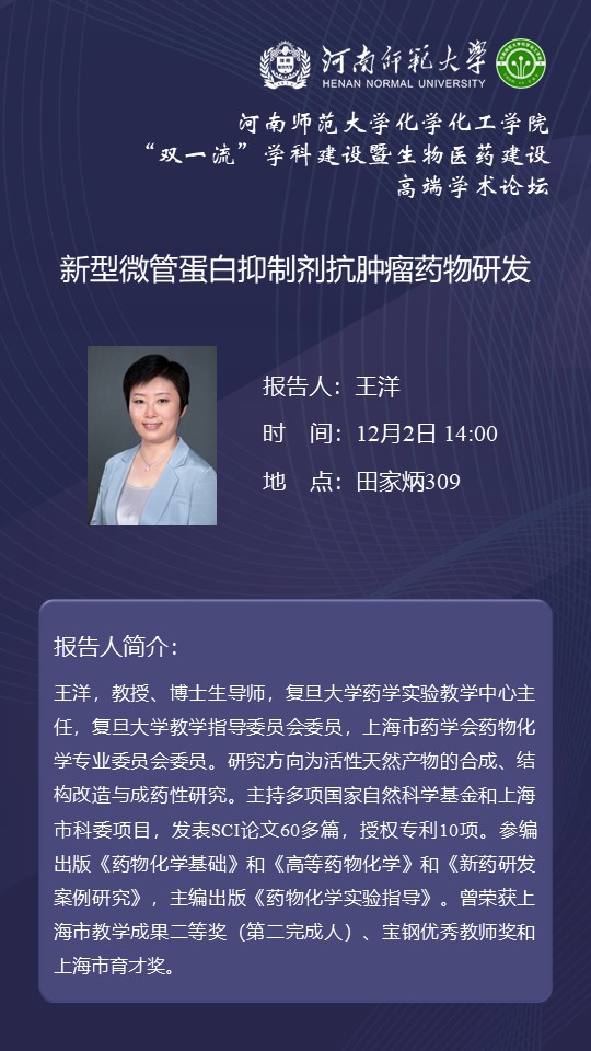 复旦大学王洋教授将应邀做客百年校庆之“俊甫”讲坛