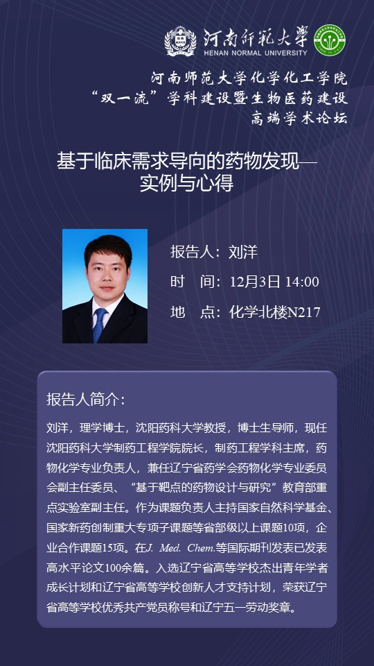 沈阳药科大学刘洋教授将应邀做客百年校庆之“俊甫”讲坛