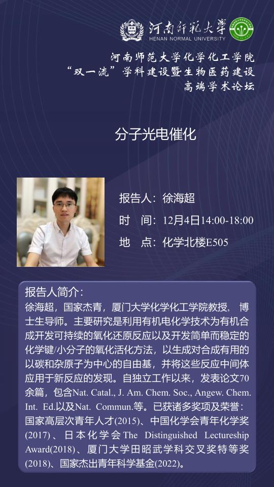 厦门大学徐海超教授将应邀做客百年校庆之“俊甫”讲坛