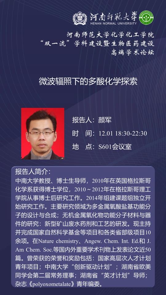 中南大学颜军教授将应邀做客百年校庆之“俊甫”讲坛