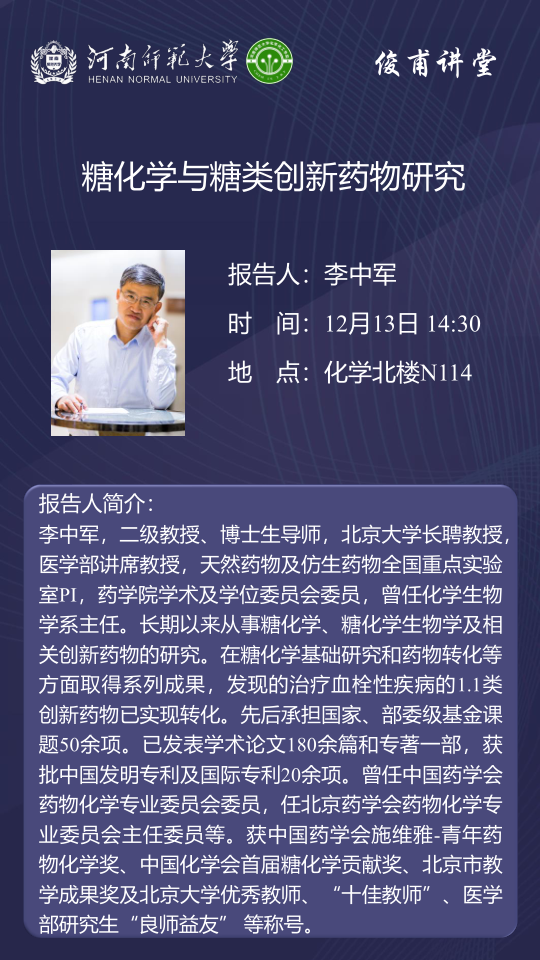 北京大学李中军教授将应邀做客百年校庆之“俊甫”讲坛