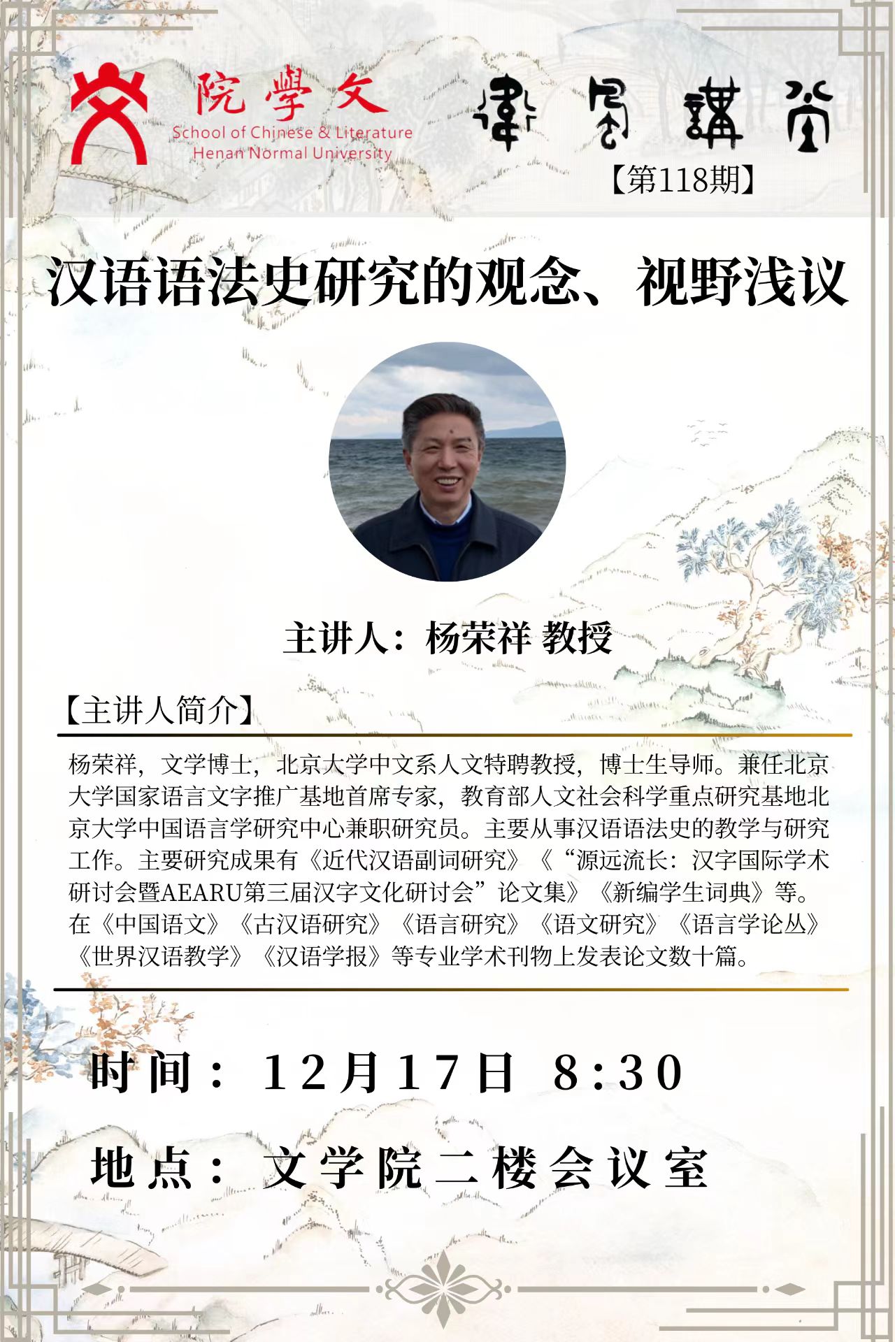 北京大学杨荣祥教授将应邀做客百年校庆之卫风讲堂