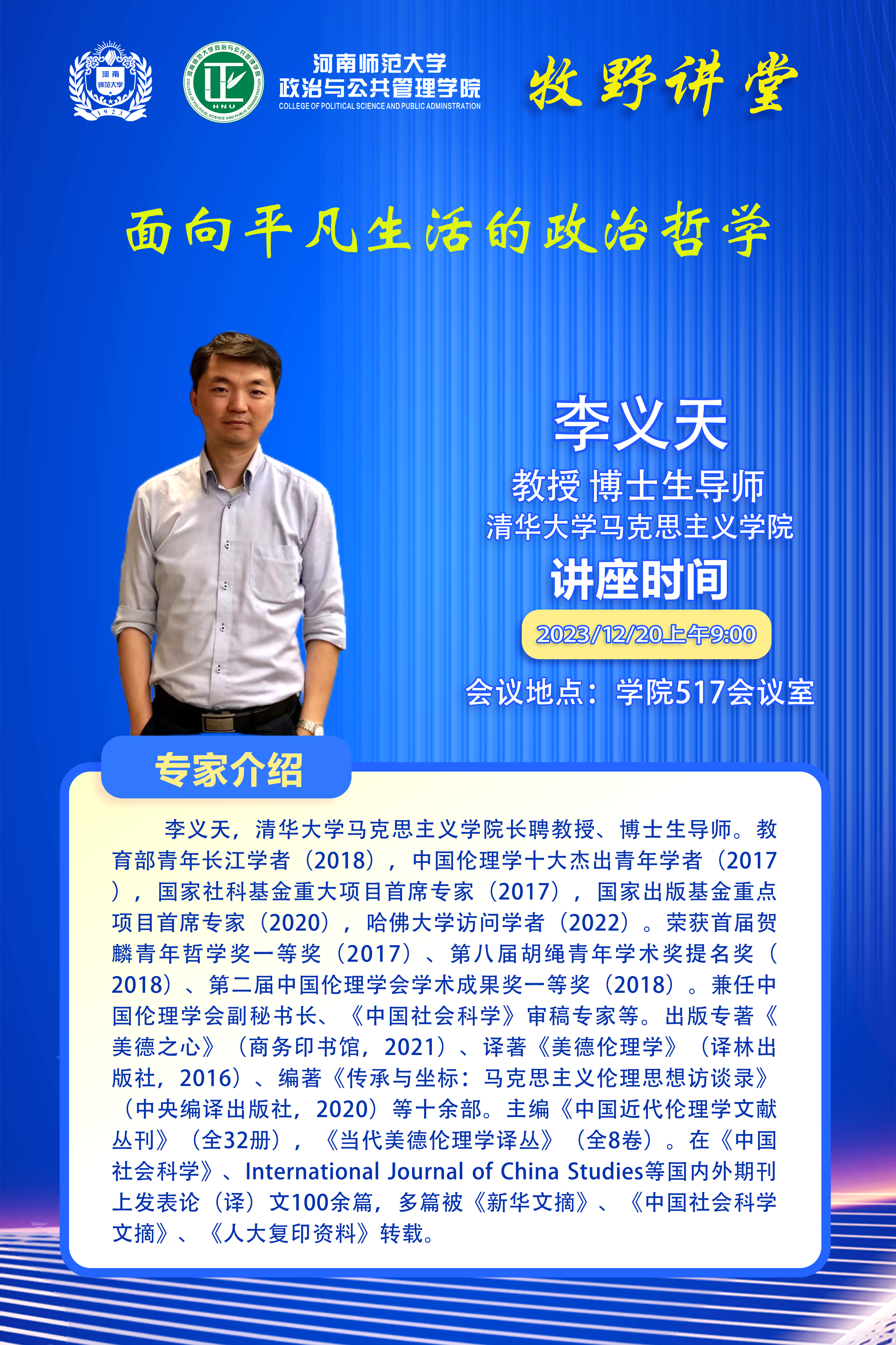 清华大学李义天教授将应邀做客百年校庆之牧野讲堂