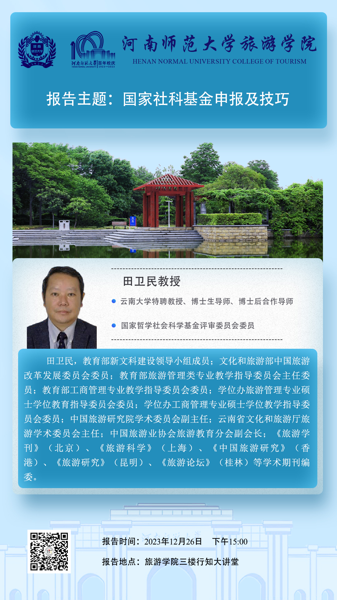 云南大学田卫民教授将应邀做客百年校庆之高端专家行知讲坛