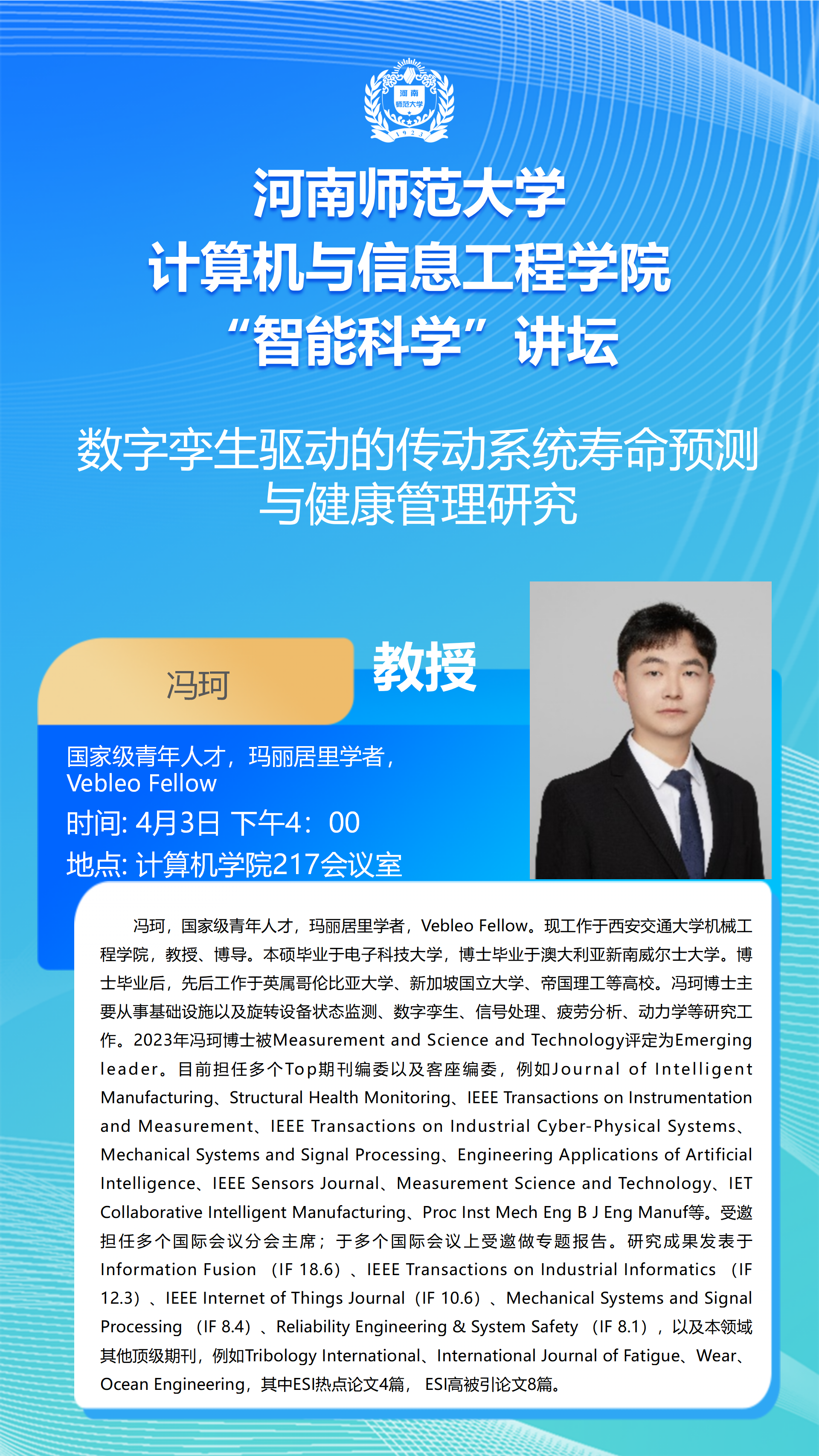 西安交通大学冯珂教授将应邀做客“智能科学”讲坛