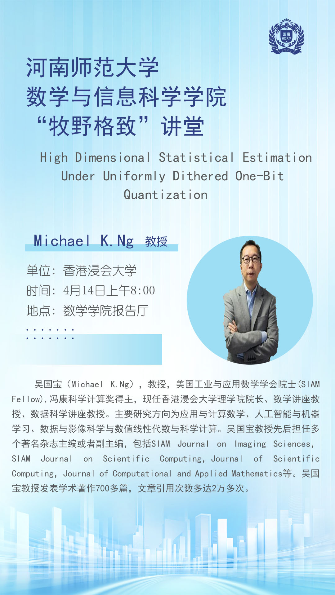 香港浸会大学Michael K.Ng教授将应邀做客“牧野格致”讲堂