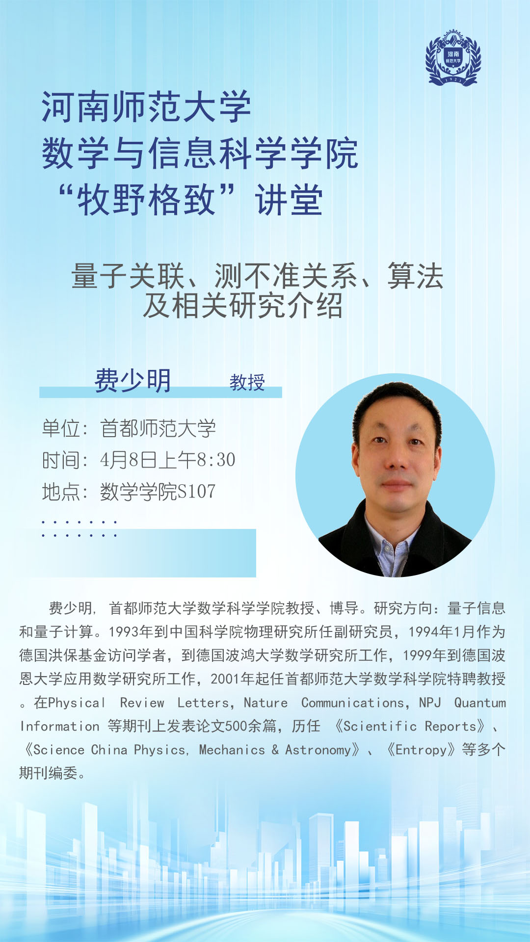 首都师范大学费少明教授将应邀做客“牧野格致”讲堂