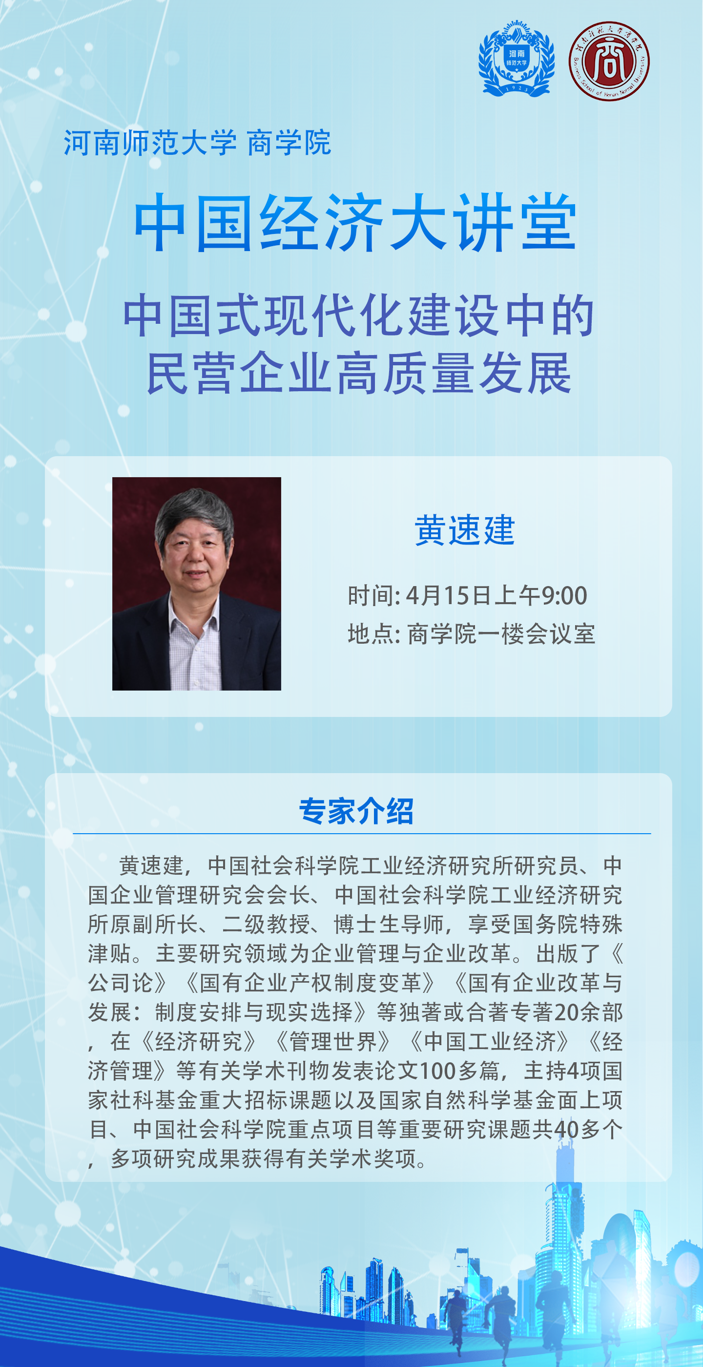 中国社会科学院黄速建教授将应邀做客中国经济大讲堂