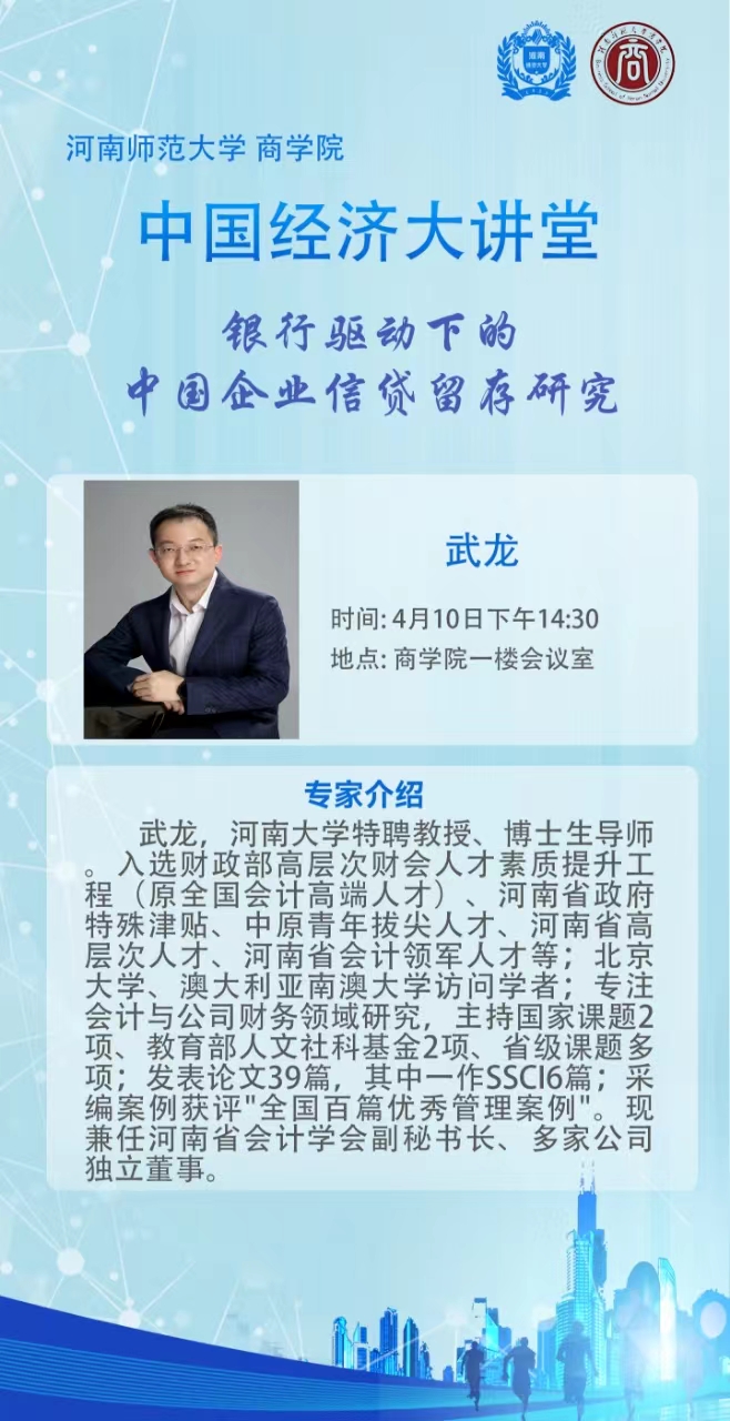 河南大学武龙教授将应邀做客中国经济大讲堂