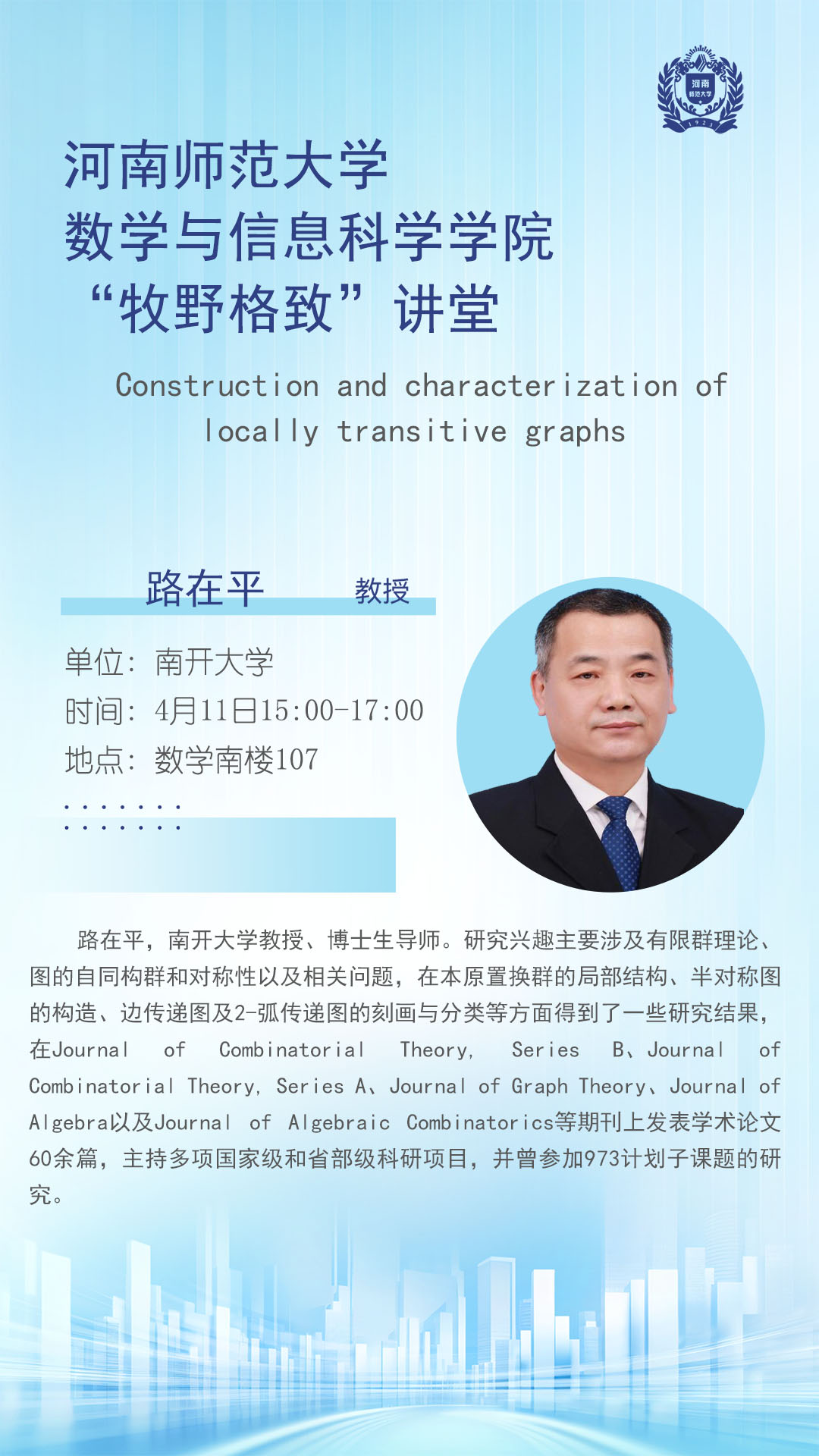 南开大学路在平教授将应邀做客“牧野格致”讲堂
