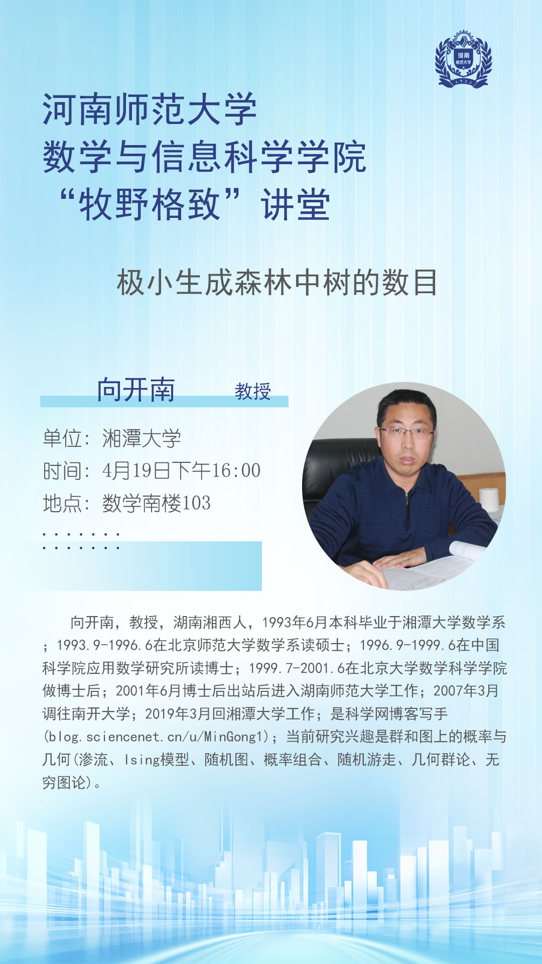 湘潭大学向开南教授将应邀做客“牧野格致”讲堂
