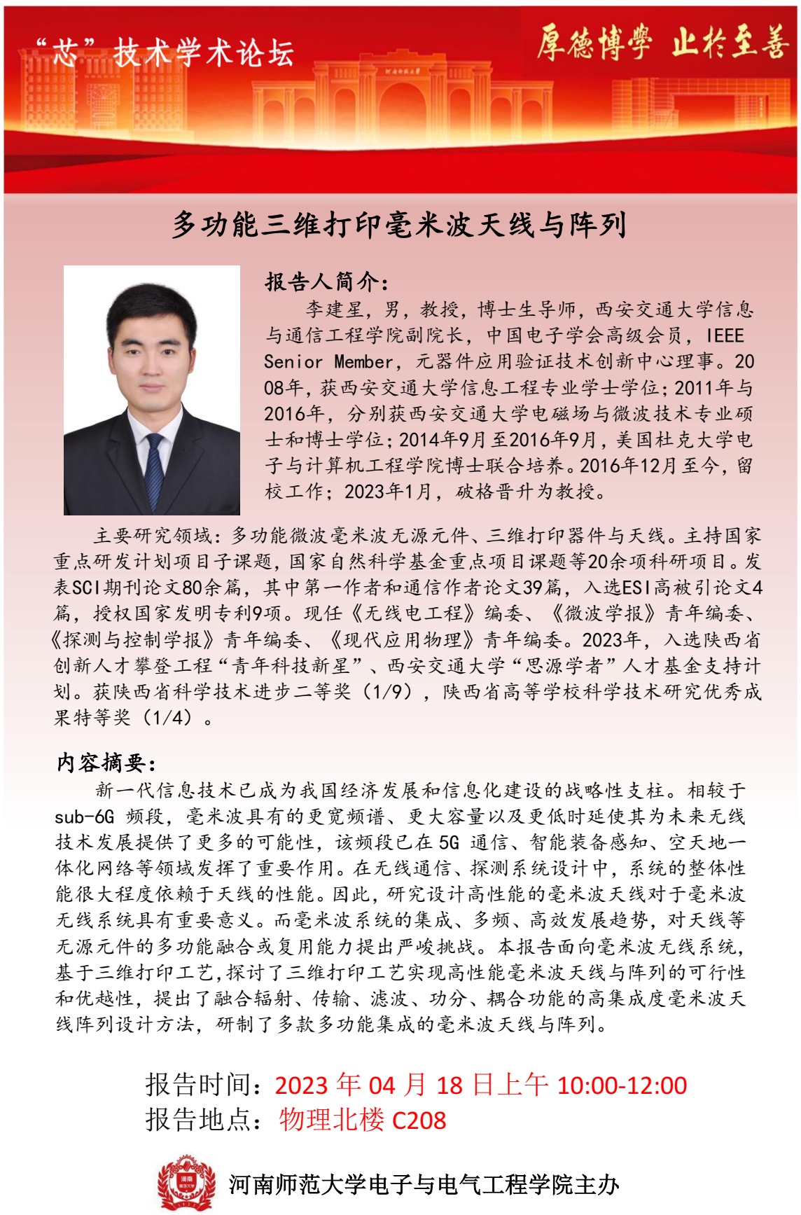 西安交通大学李建星教授将应邀做客“芯”技术学术论坛