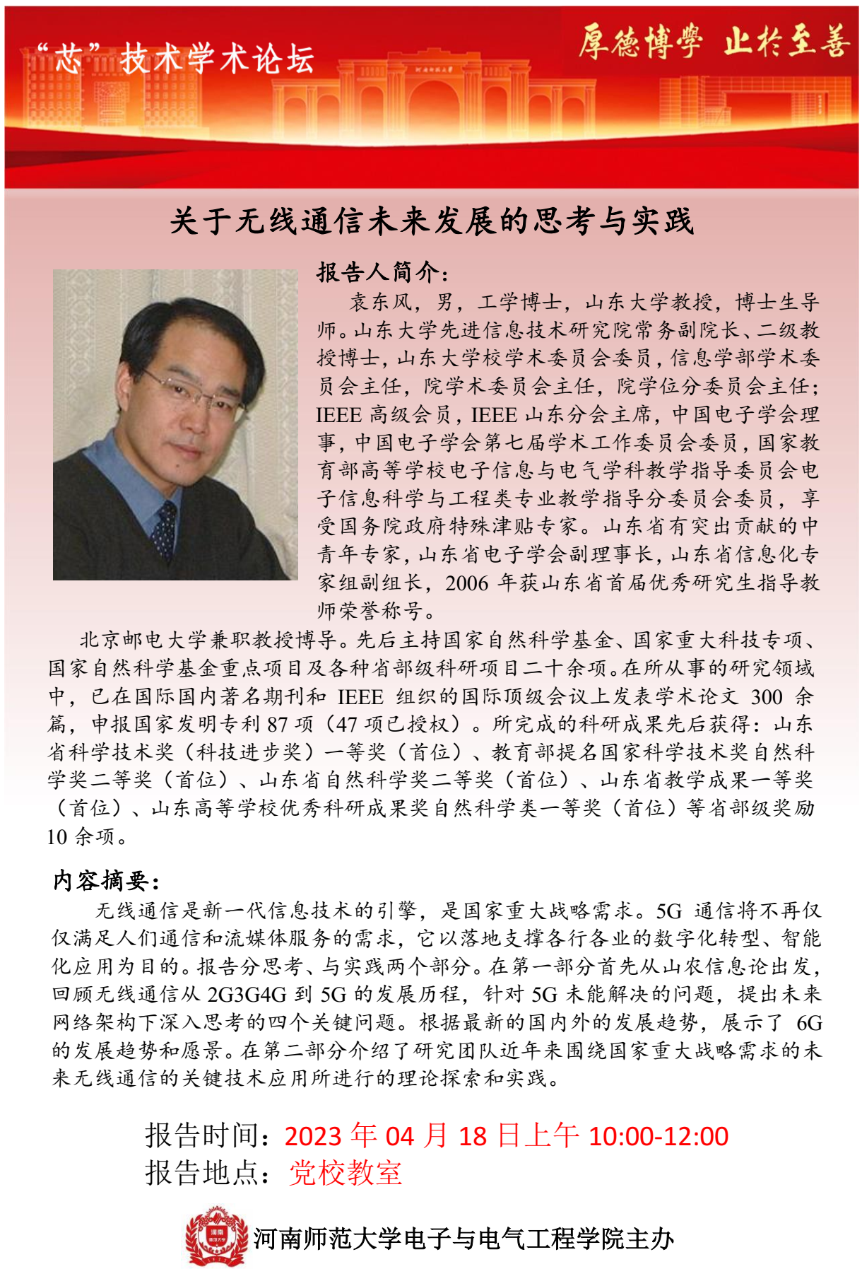 山东大学袁东风教授将应邀做客“芯”技术学术论坛